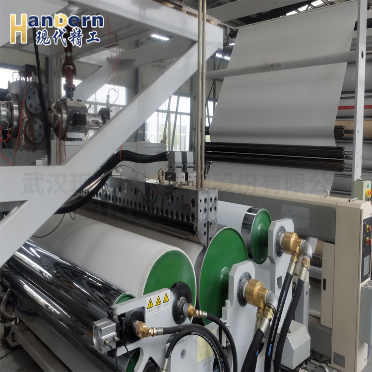 流延膜生產(chǎn)線是一種用于生產(chǎn)各種塑料薄膜的設(shè)備。其工作原理是將塑料顆粒經(jīng)過熔融、擠出、拉伸、冷卻等一系列工藝,制成具有一定厚度、寬度和長(zhǎng)度的薄膜。流延膜生產(chǎn)線通常由熔融機(jī)、擠出機(jī)、拉伸機(jī)、冷卻裝置、切割機(jī)等多個(gè)部分組成。其中,熔融機(jī)主要用于將塑料顆粒熔化,擠出機(jī)將熔化后的塑料擠出成為一定形狀的薄片,拉伸機(jī)將薄片進(jìn)行拉伸,冷卻裝置用于快速冷卻和固化,切割機(jī)用于將薄膜切割成所需尺寸。
